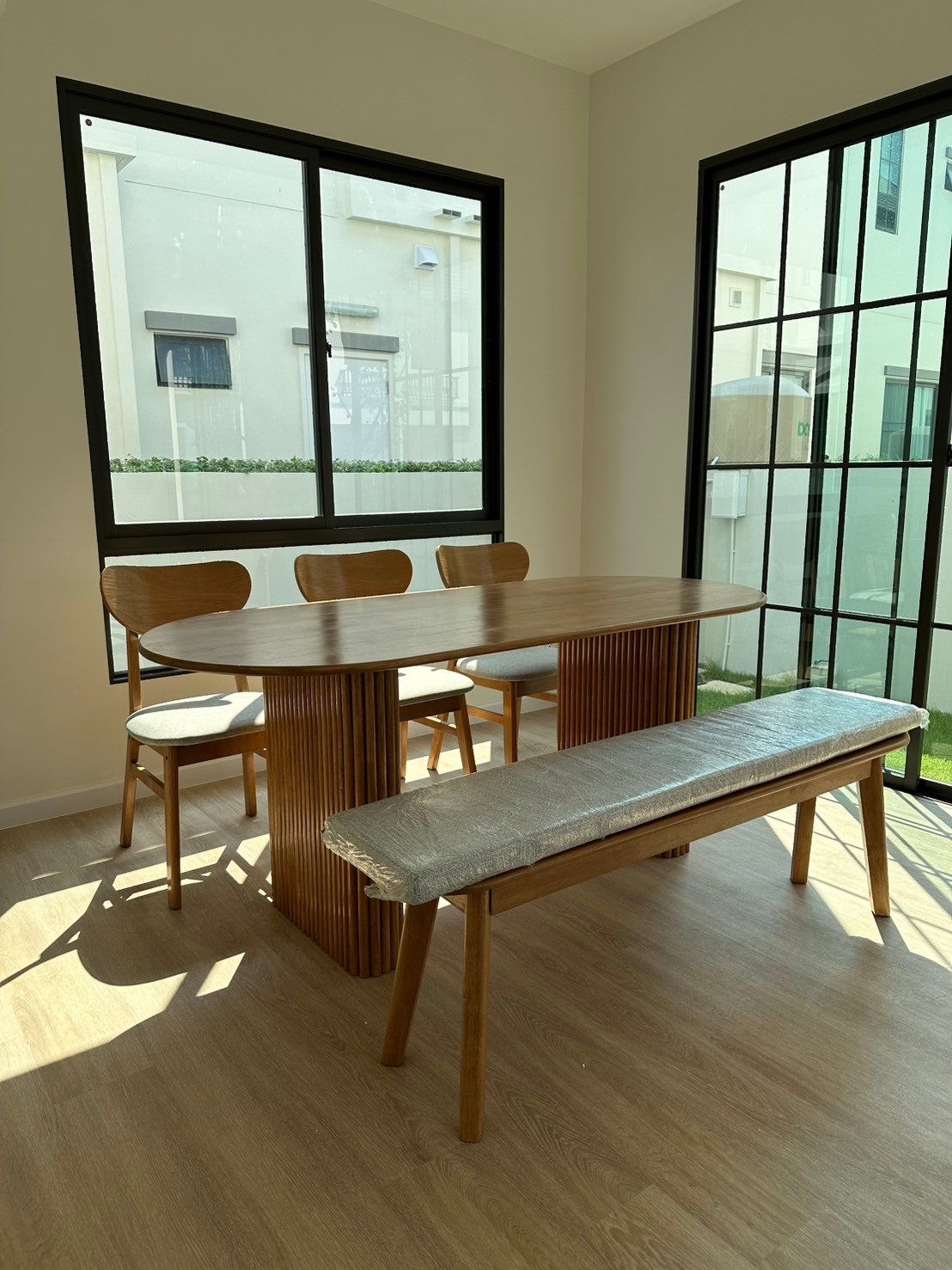 โต๊ะ180ซม.+เก้าอี้ CB เบาะสีเทา+ม้านั่ง