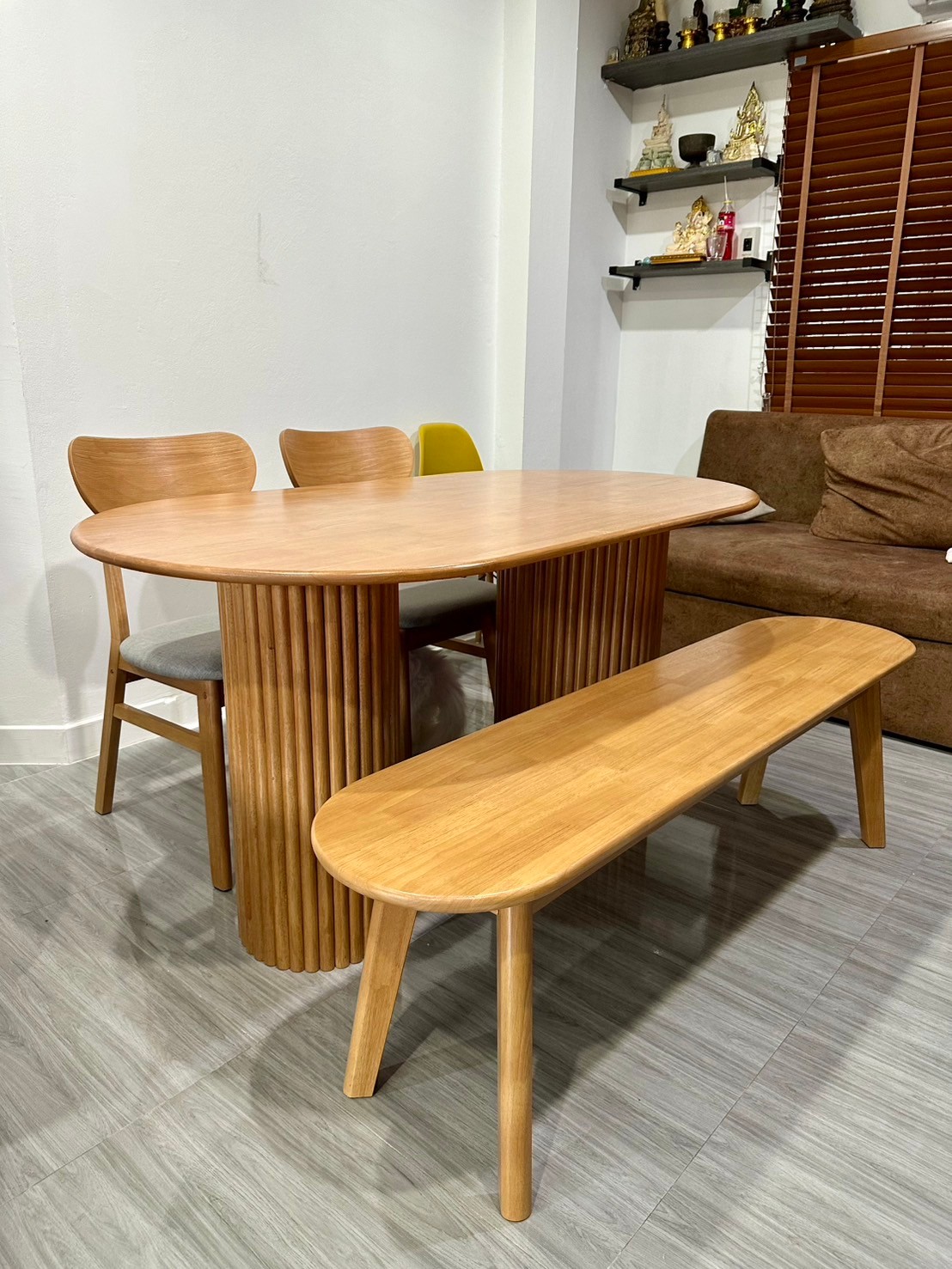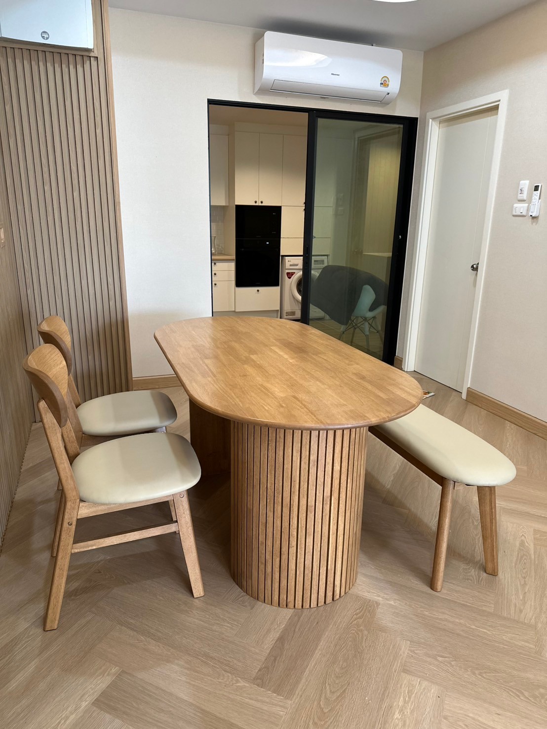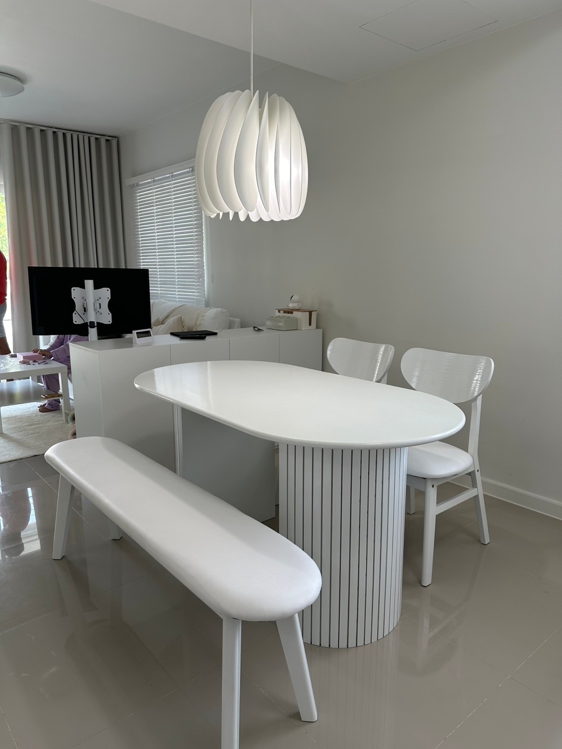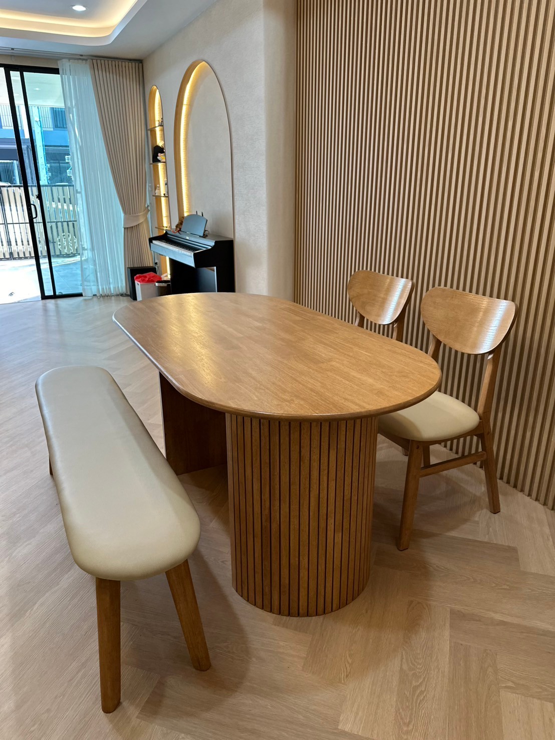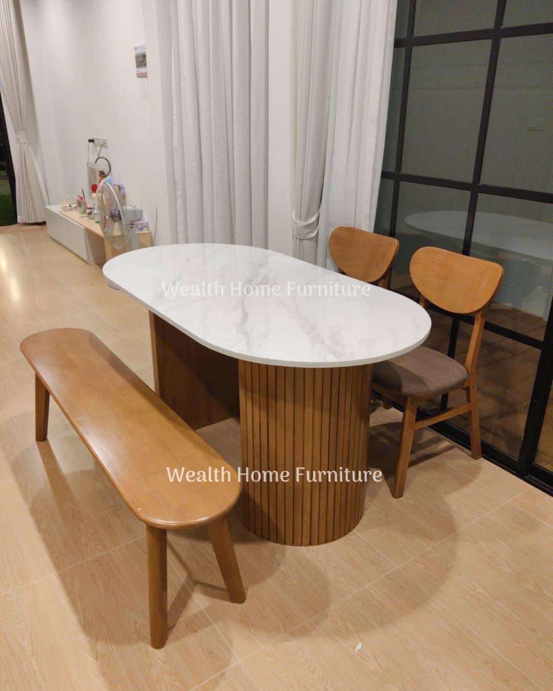 โต๊ะแคปซูล+เก้าอี้หมุน 4 ที่นั่ง+ม้านั่ง150Cm