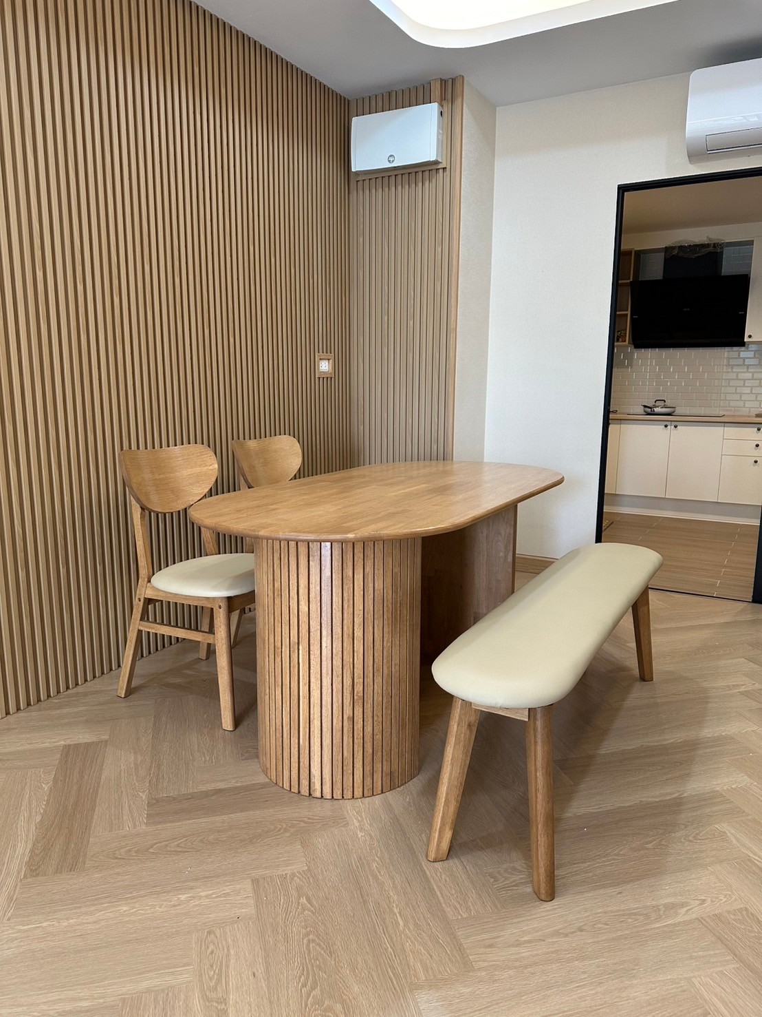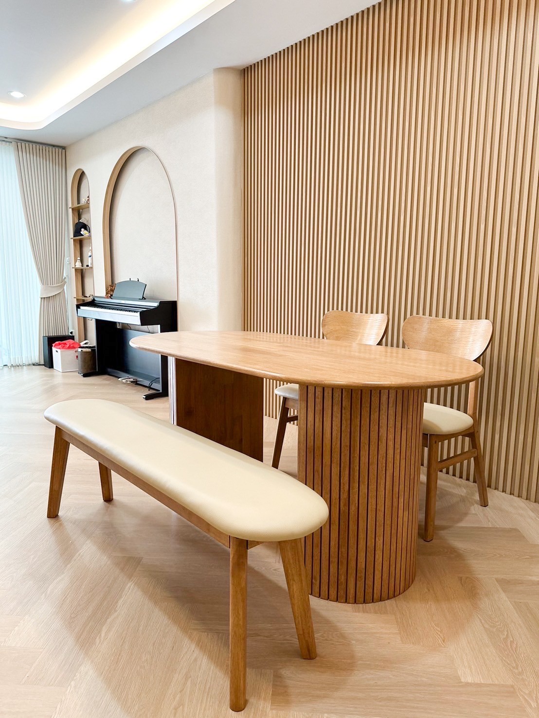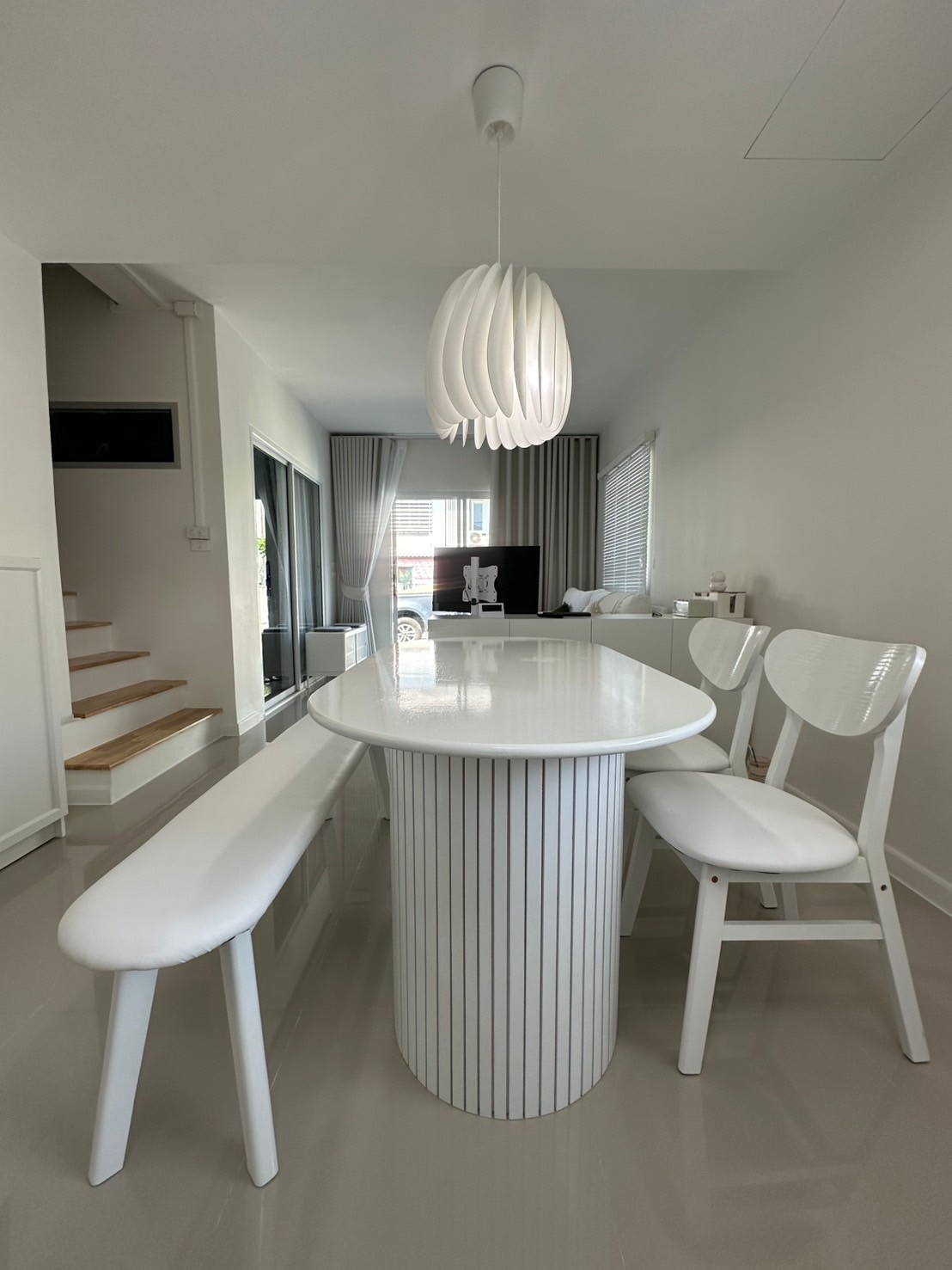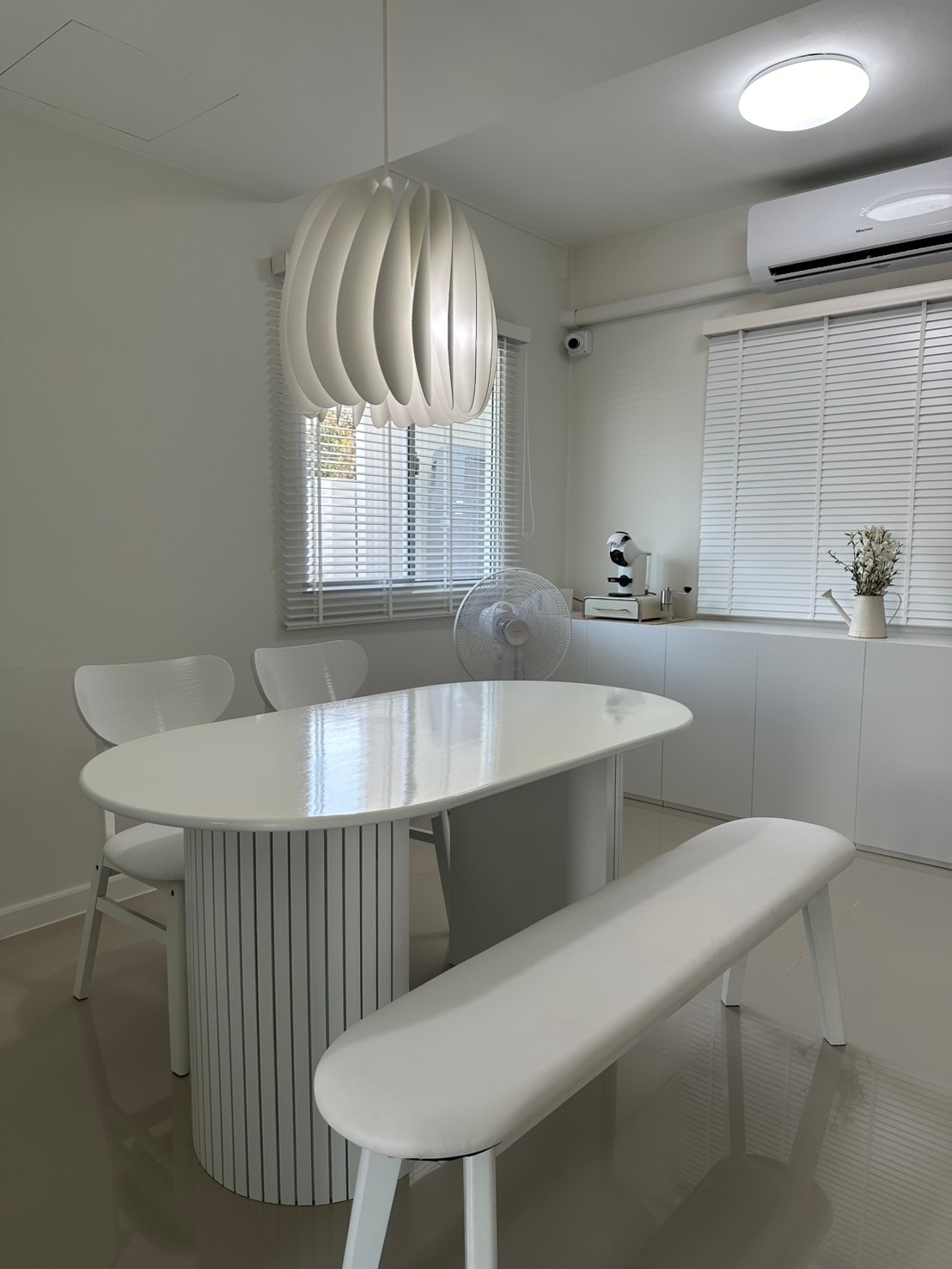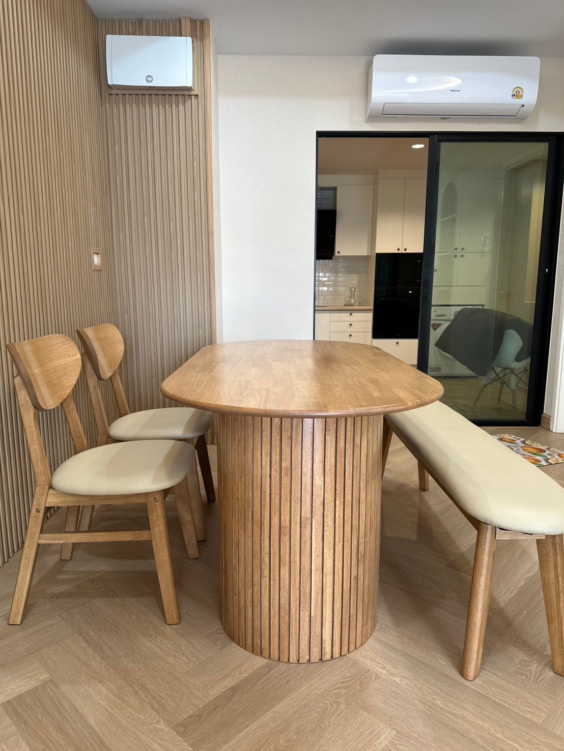 โต๊ะแคปซูล+เก้าอี้หมุน 4 ที่นั่ง+ม้านั่ง150Cm