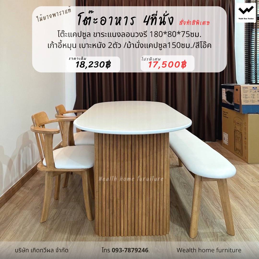 โต๊ะอาหาร 4 ที่นั่ง สั่งทำสีพิเศษ