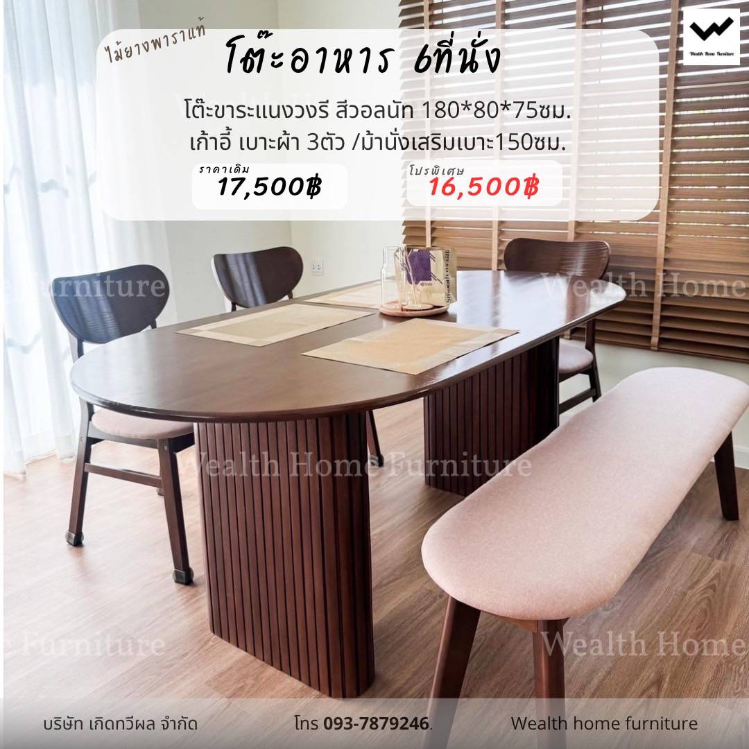 โต๊ะอาหาร 6 ที่นั่ง สีวอลนัท