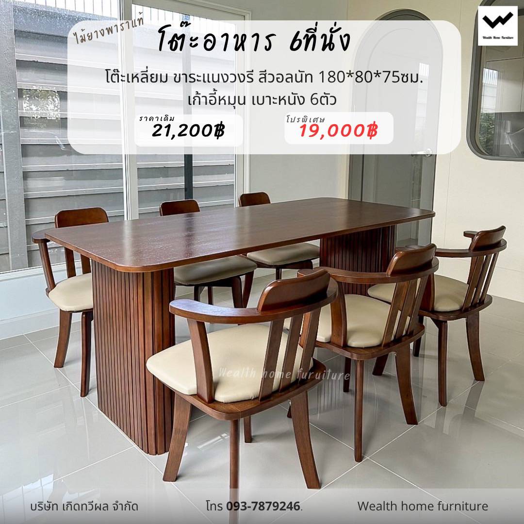 โต๊ะอาหาร 6 ที่นั่ง สีวอลนัท