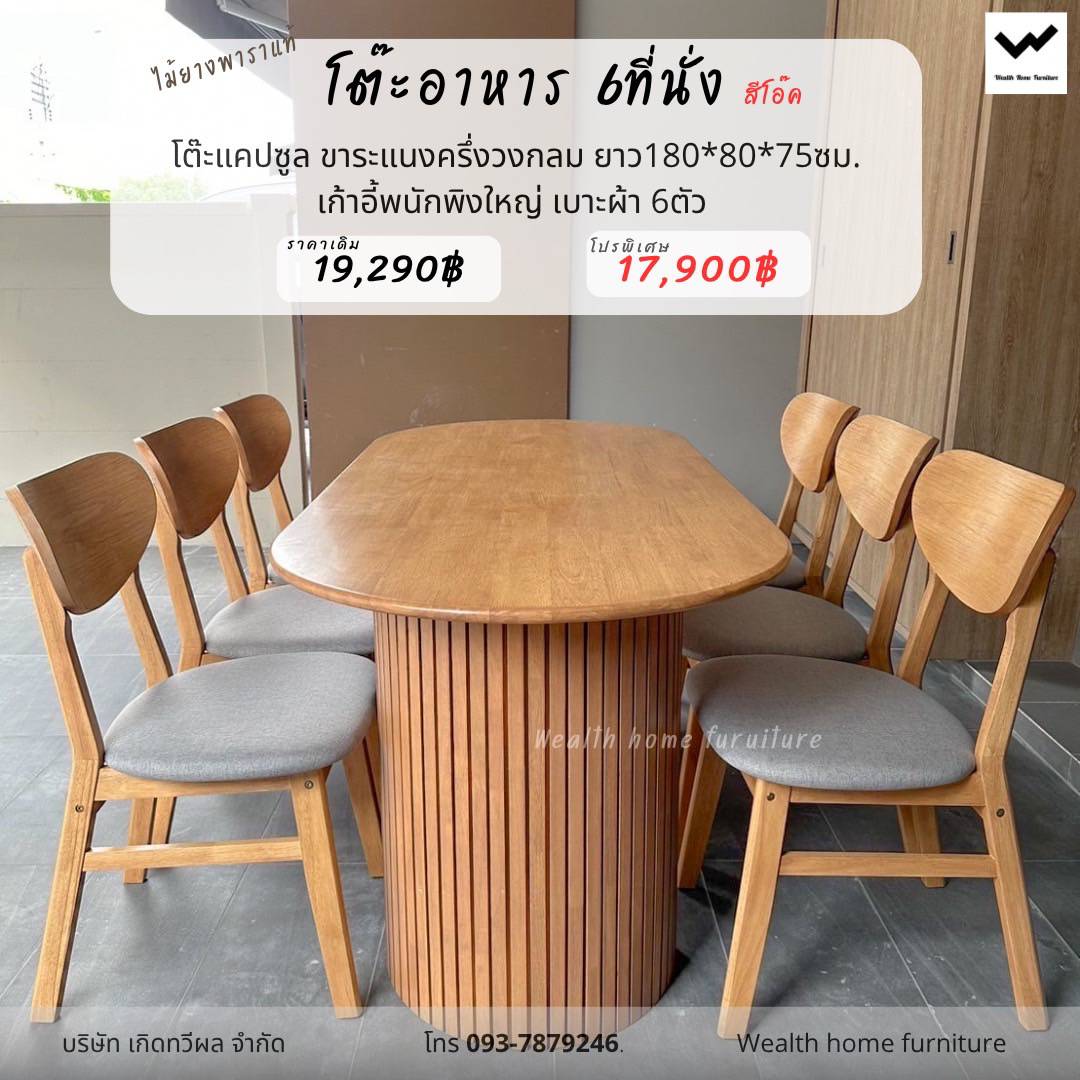 โต๊ะอาหาร 6 ที่นั่ง สีโอ๊ค