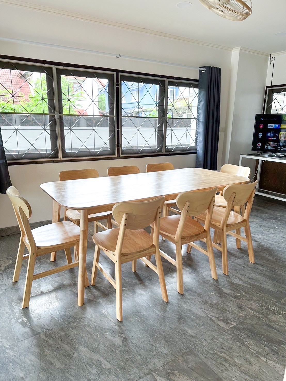 โต๊ะ200ซม.+เก้าอี้พื้นไม้ 8 ที่นั่ง